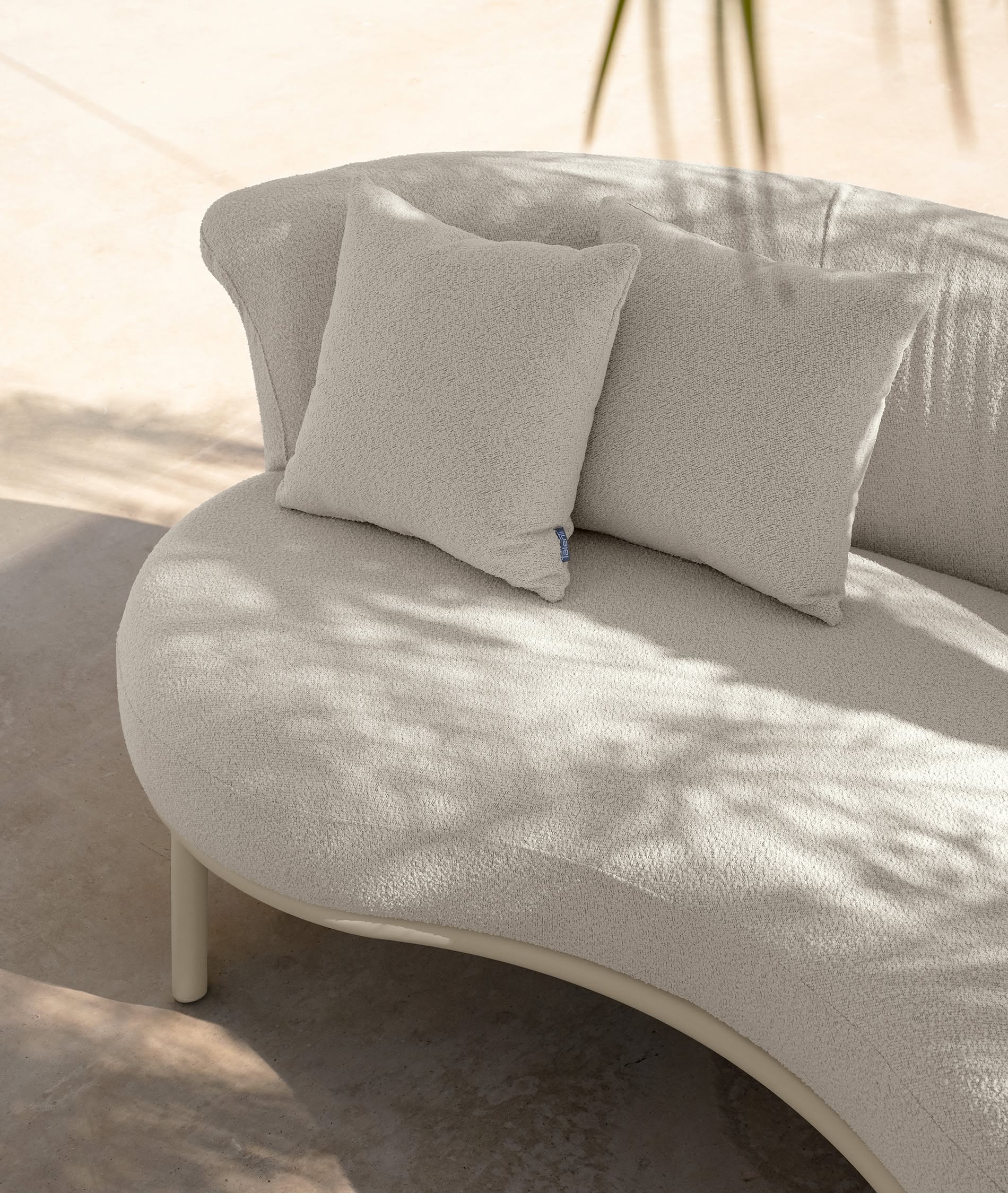 Le sedute sono completate da cuscini con rivestimenti sfoderabili e tessuti tecnici studiati per durare nel tempo, mantenendo colore e comfort anche dopo un uso ripetuto. -