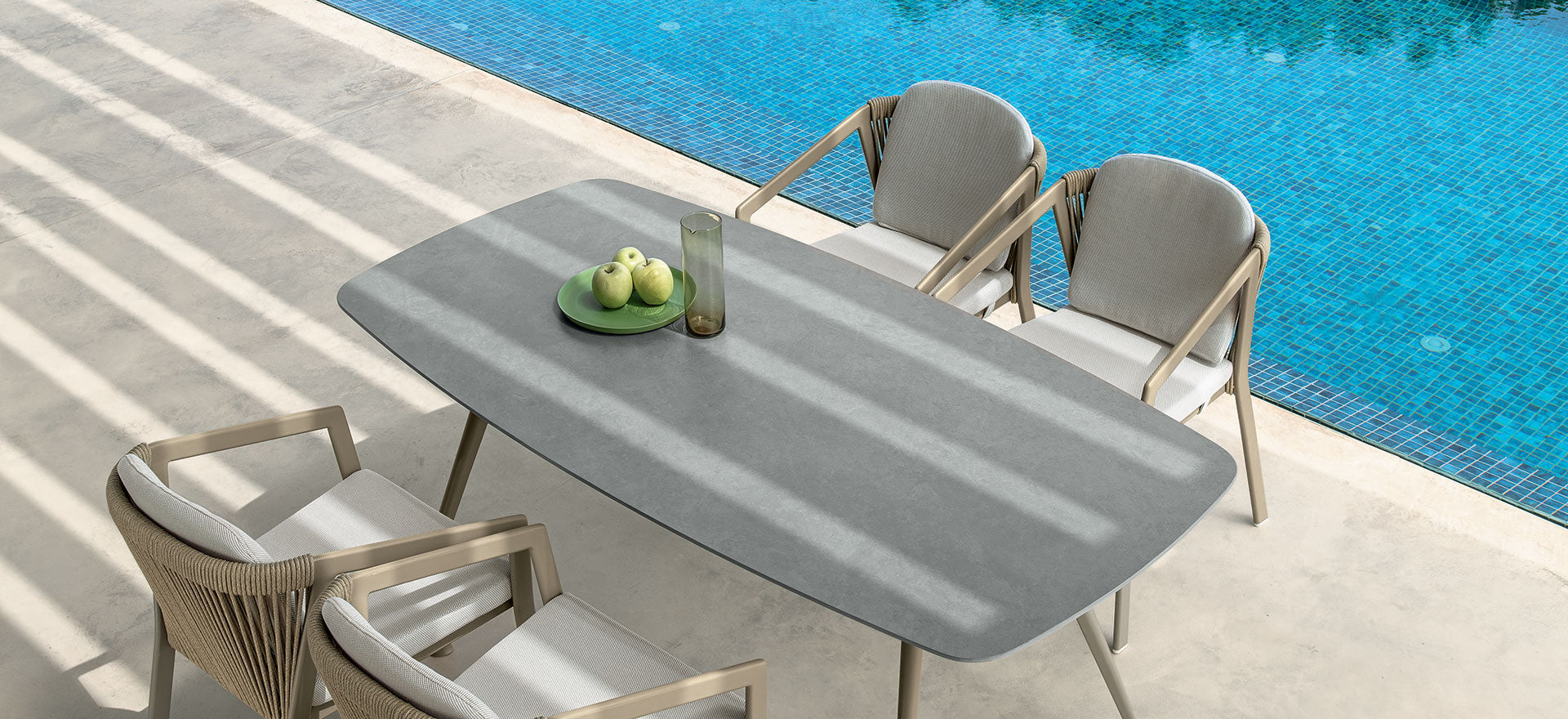 La collezione Nova si distingue per un linguaggio formale pulito e contemporaneo, definito da linee sottili e proporzioni perfettamente bilanciate. Le strutture leggere e l’assenza di elementi superflui creano un’estetica raffinata e discreta, capace di integrarsi con naturalezza in contesti outdoor moderni e ricercati. Ogni elemento è progettato per esprimere semplicità ed eleganza, trasformando la purezza delle forme in un segno distintivo che valorizza lo spazio senza appesantirlo.