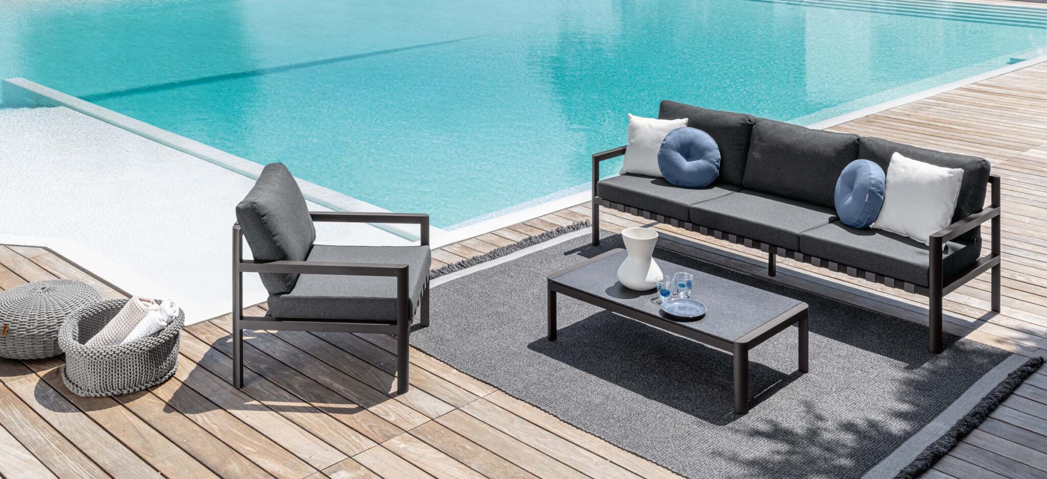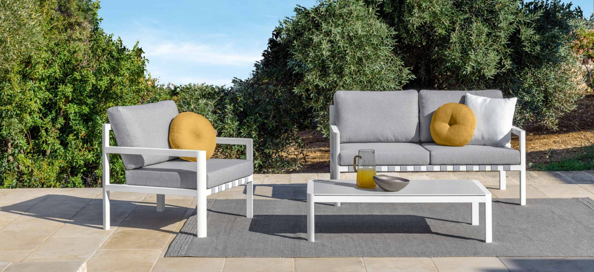 Le strutture in alluminio verniciato a polvere, combinate con tessuti sfoderabili resistenti a UV, acqua e macchie, assicurano durabilità e facilità di manutenzione. Le cinghie elastiche e le imbottiture Quick Dry Foam completano un insieme di materiali progettati per l’uso outdoor quotidiano, garantendo performance costante nel tempo. Nunù unisce così eleganza, comfort e resistenza in una collezione affidabile e di lunga durata, perfetta per vivere gli spazi esterni senza compromessi.