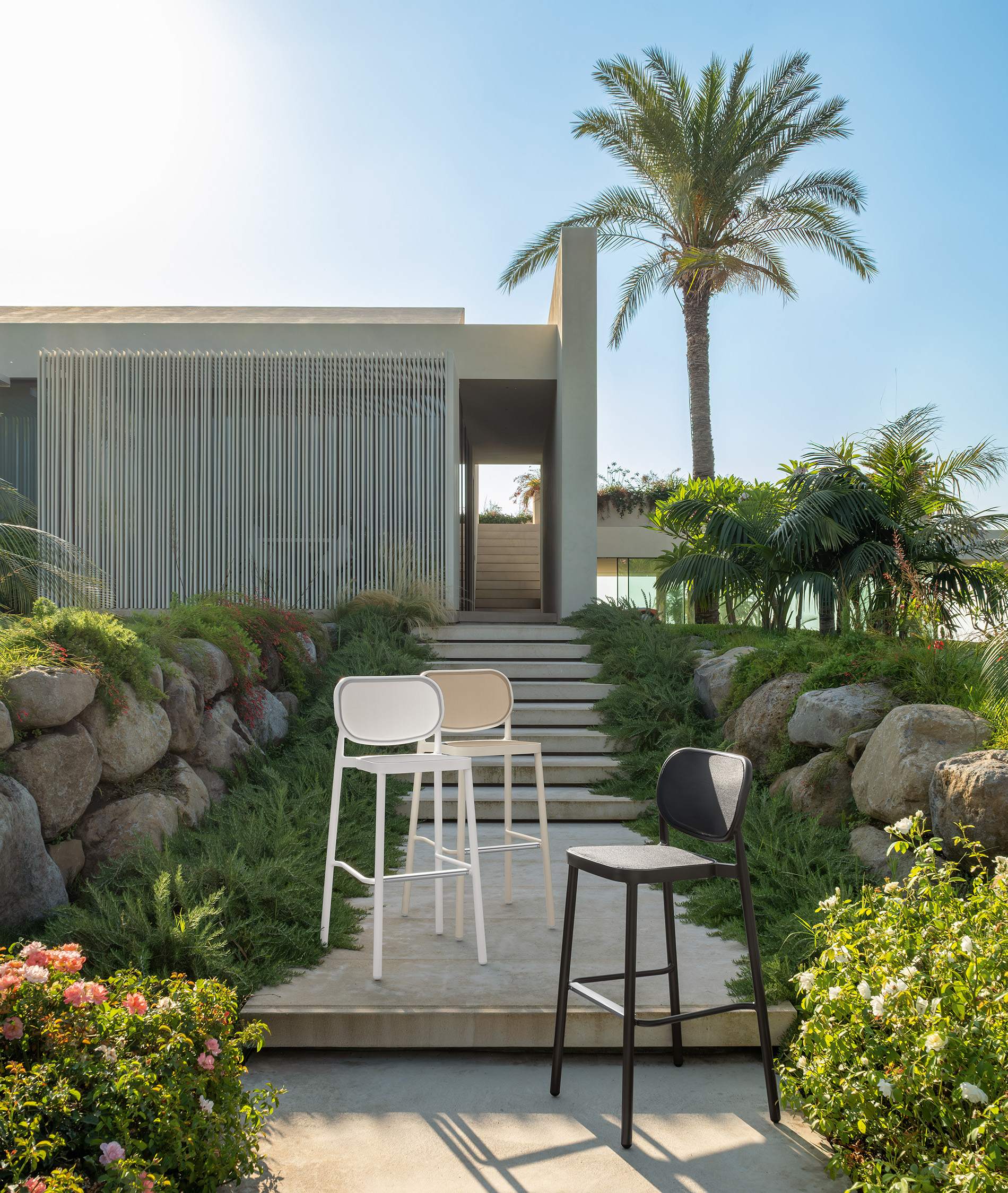 The Meg stool was created to complement contemporary outdoor spaces with elegance and functionality.