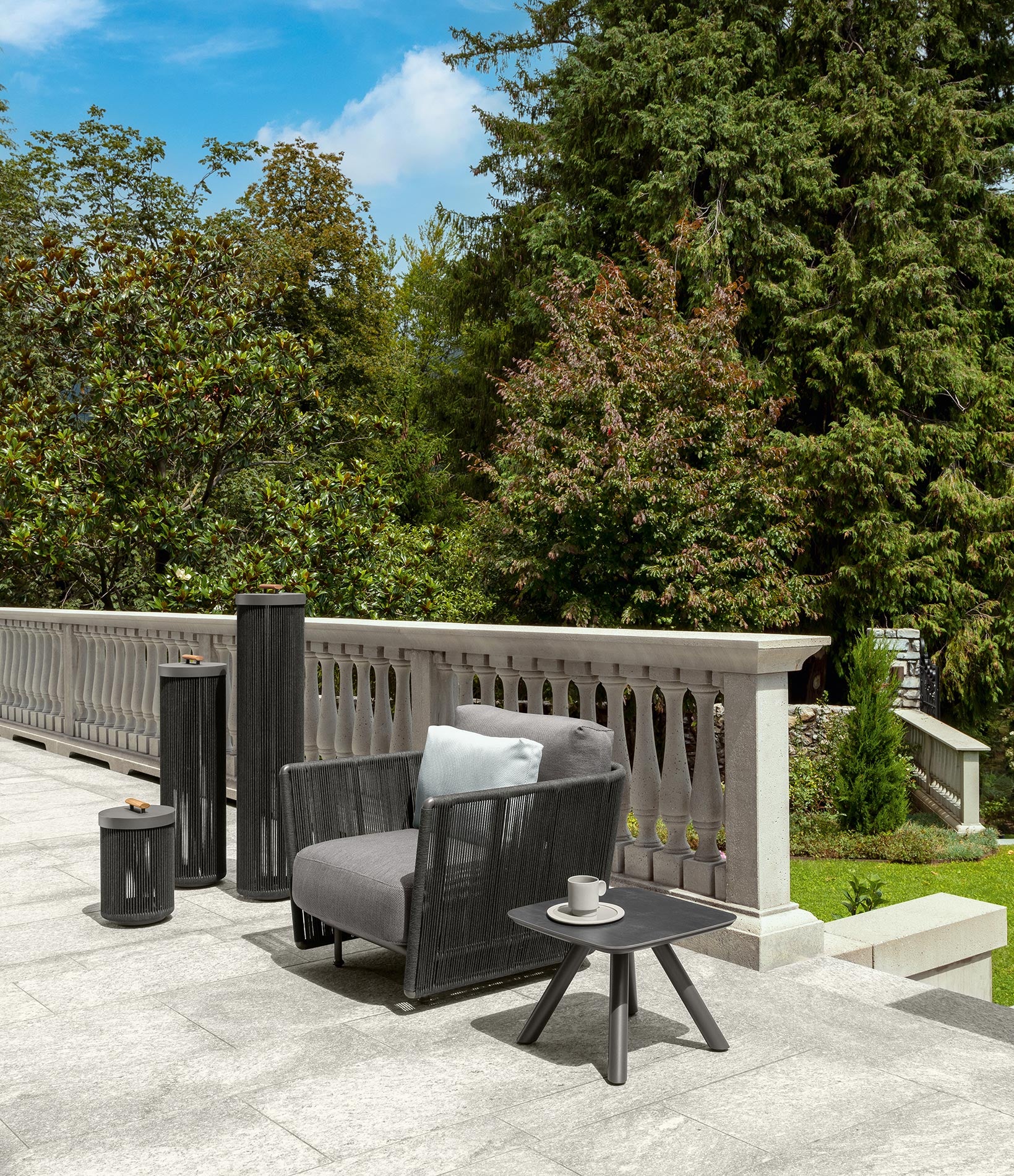 La lampada H95 Coral è il complemento d’arredo pensato in abbinamento perfetto con gli arredi da esterno della stessa collezione. La struttura in alluminio rivestita da corda sintetica, fil rouge di tutta la collezione, esprime una sensazione di leggerezza verso l’alto.
